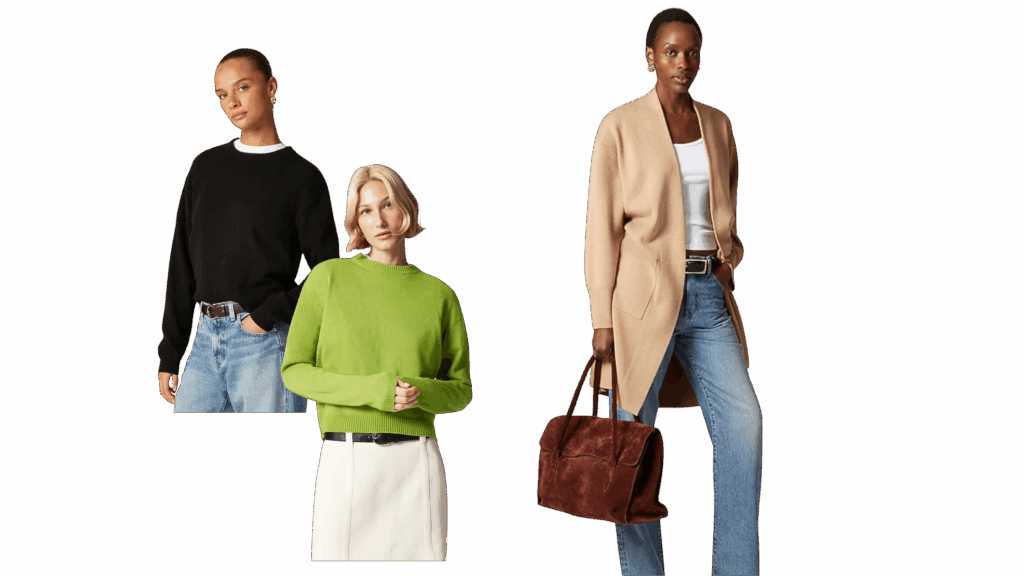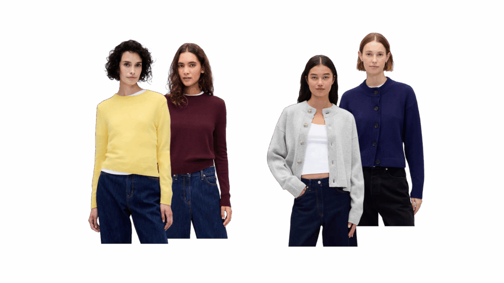 Gap continues to surprise with elevated essentials that don’t compromise on comfort. Their cotton and wool-blend sweaters are cozy without being bulky, and their ribbed cardigans layer beautifully over everything from button-downs to camisoles.