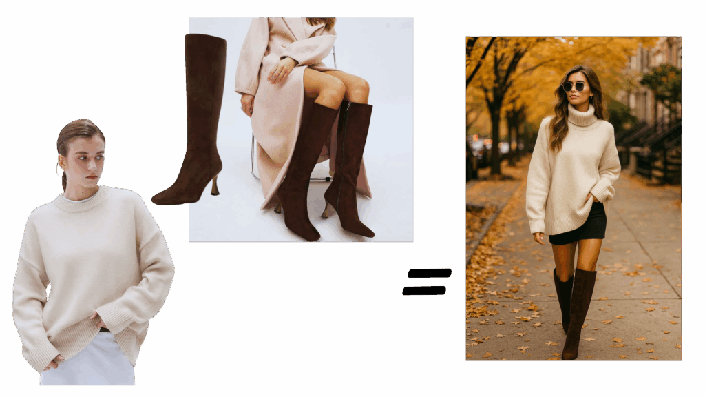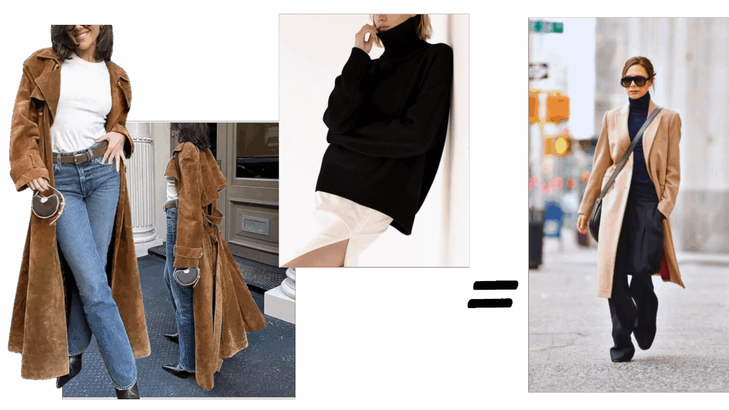 ♦︎Choose one dominant color (e.g., camel) and one accent color (e.g., black) rather than equal splits; it keeps the outfit grounded.