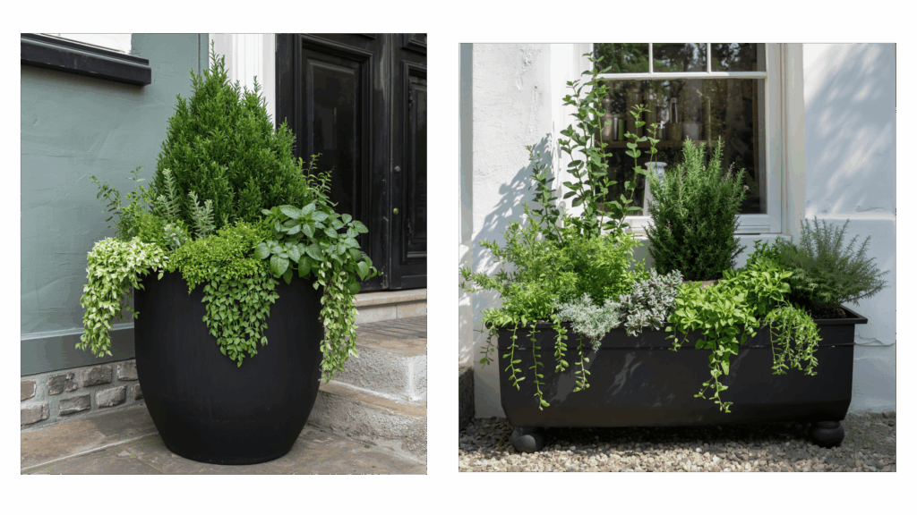 ▪︎Resin or composite planters – lightweight and better at retaining moisture